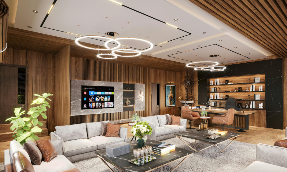 Das Zusammenspiel von Tageslicht, durchdachtem Lichtkonzept und intelligenter Steuerung lässt Oberflächen lebendig erscheinen.
